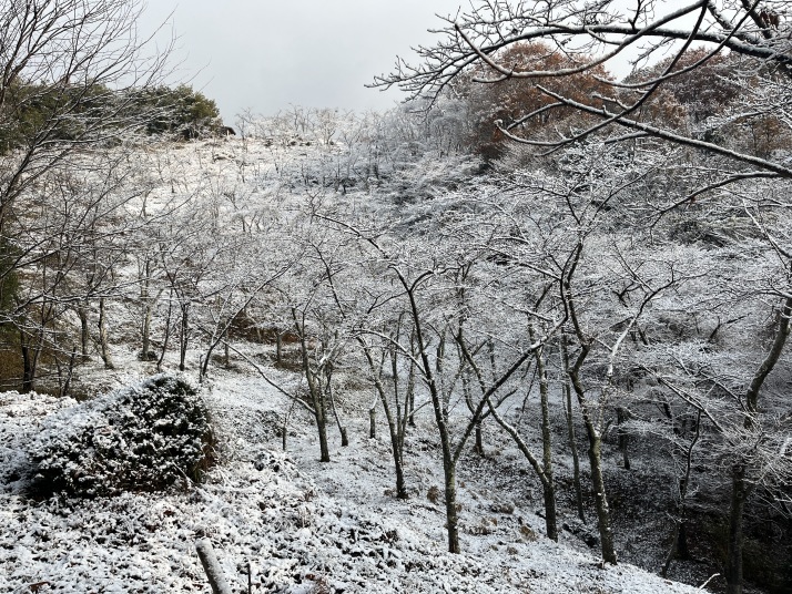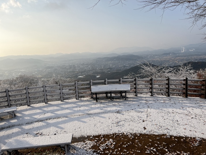 少し寒く山頂では雪が降っていました。