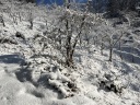 今期、最強寒波の到来で、登り始めたころから雪が降り始め、雪と風で非常に寒く、山頂では雪が積もっていました。