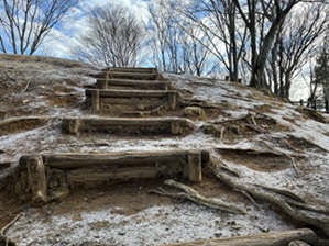 きょうは少し暖かく、絶好のトレーニング日よりと思い、登山トレーニングを開始したのですが、山頂に登るところでは、雪がシャーベット状になっており、滑ってしまい、少し危険な状態でした。