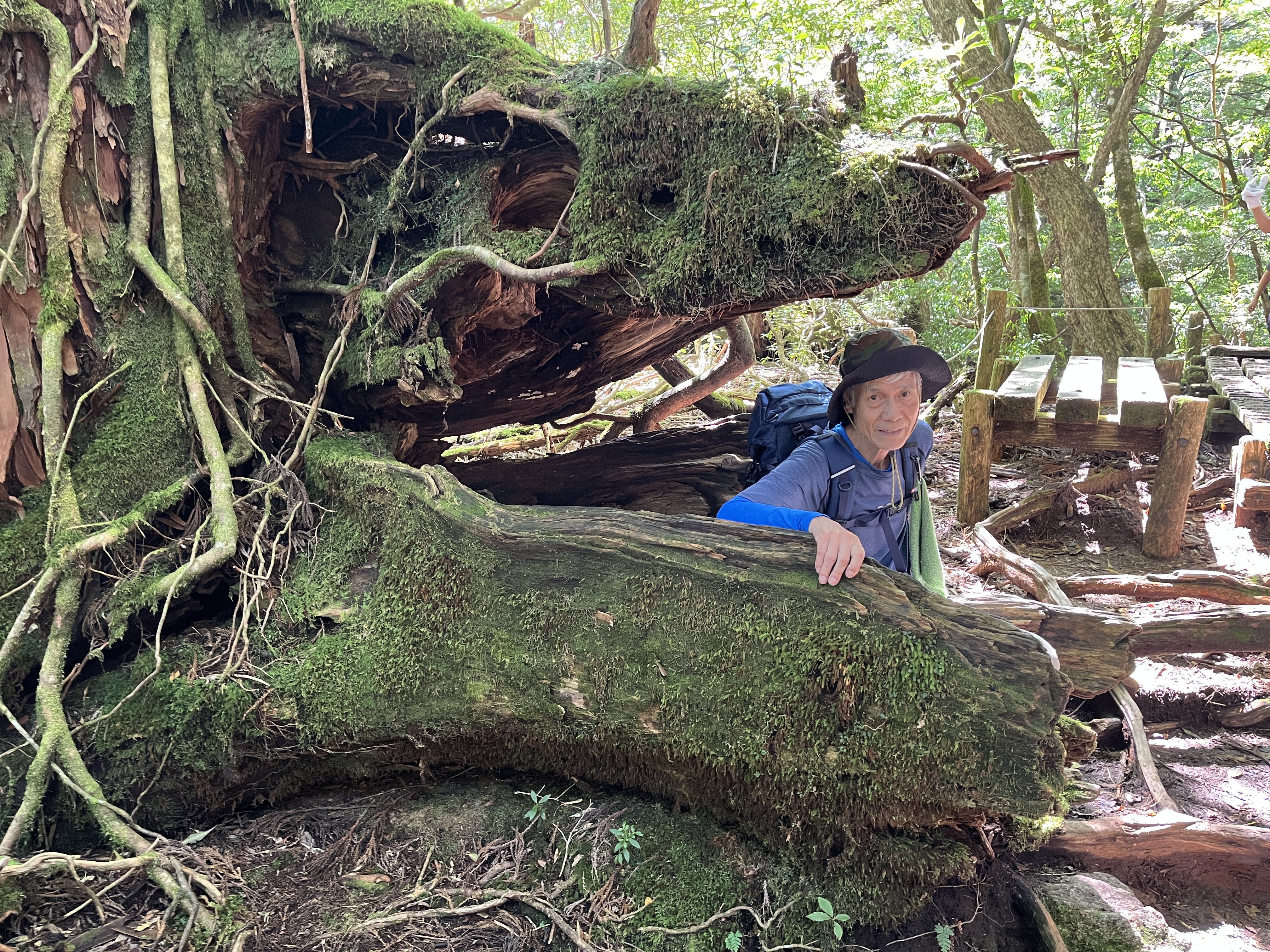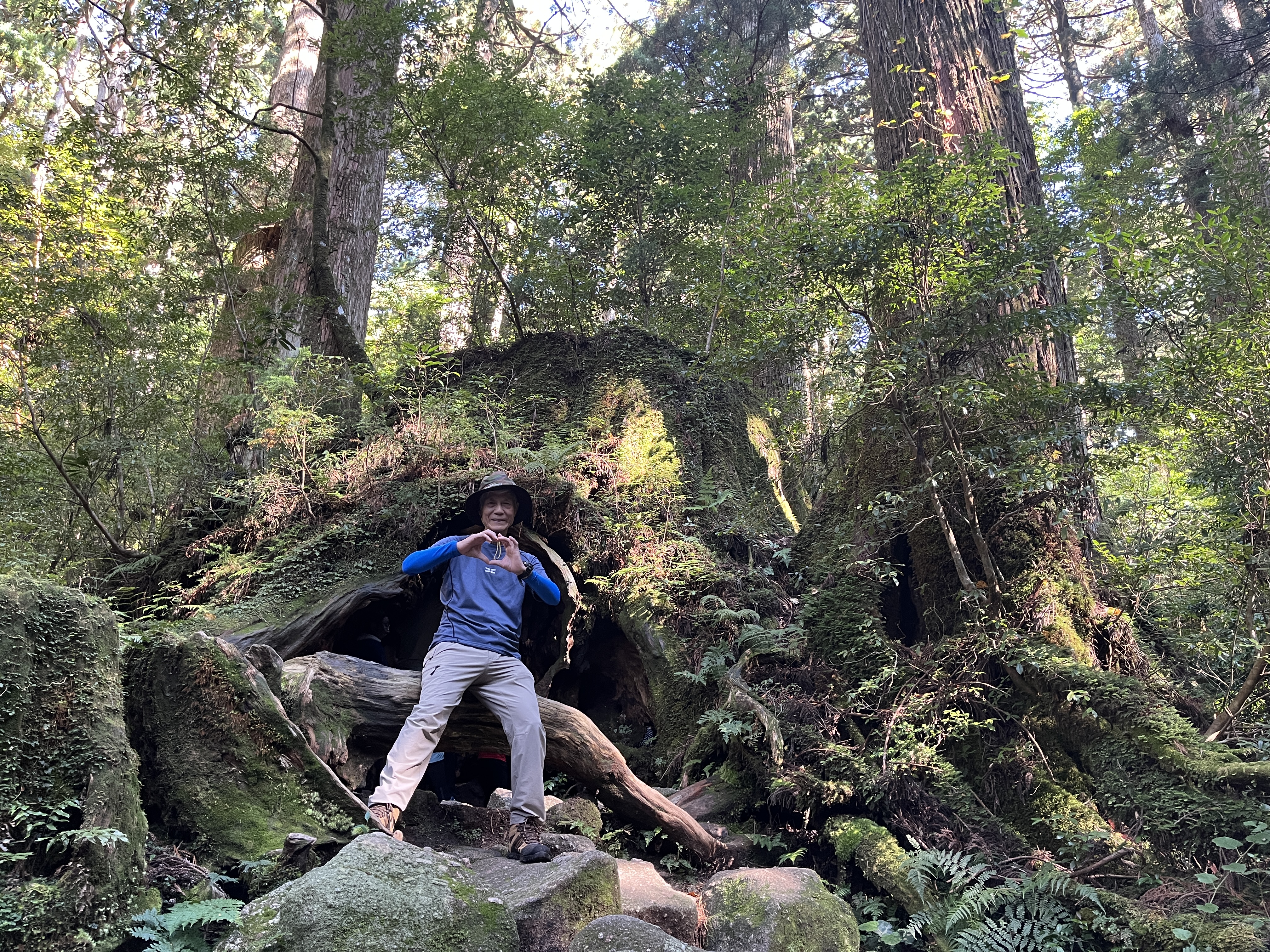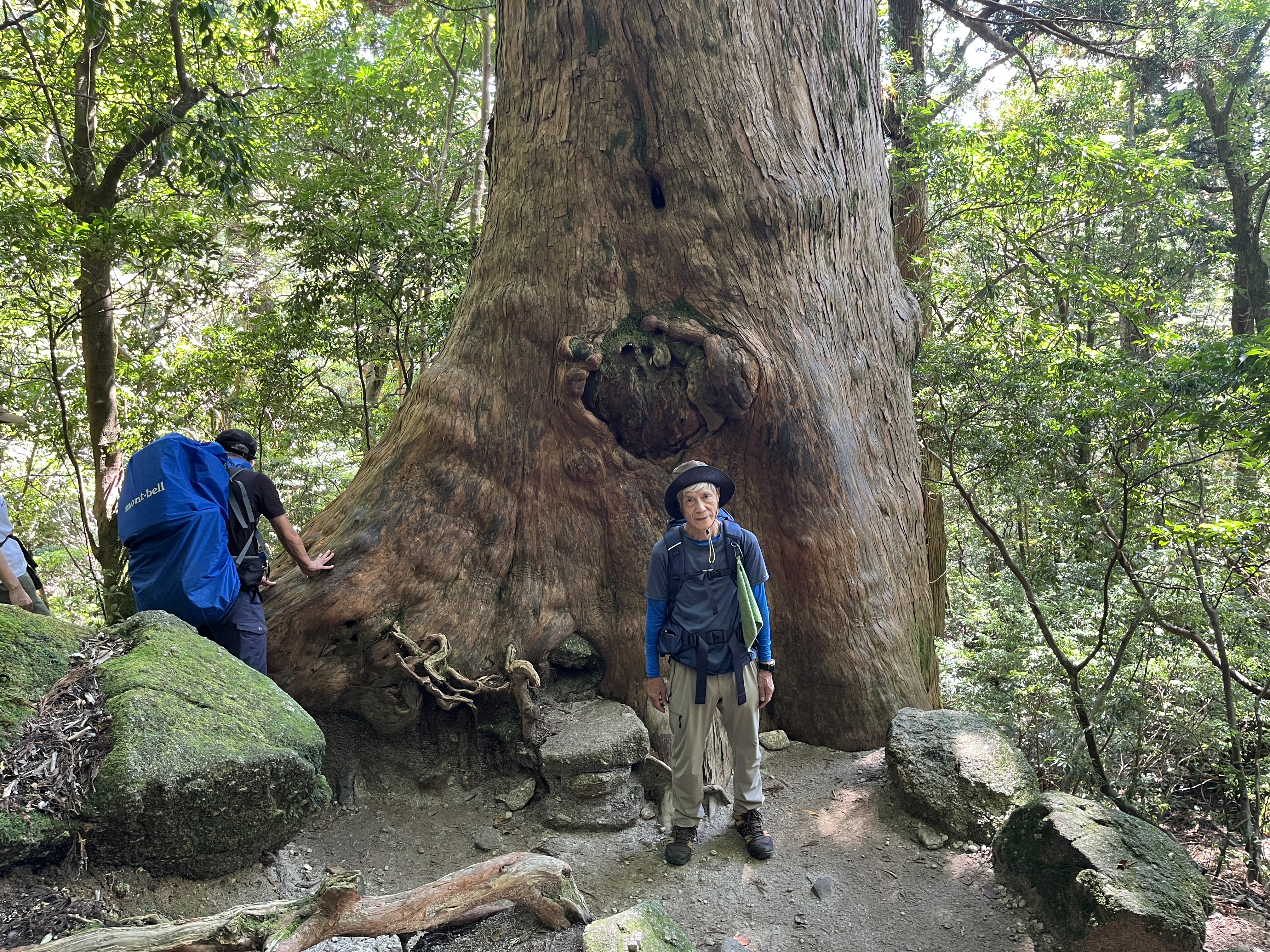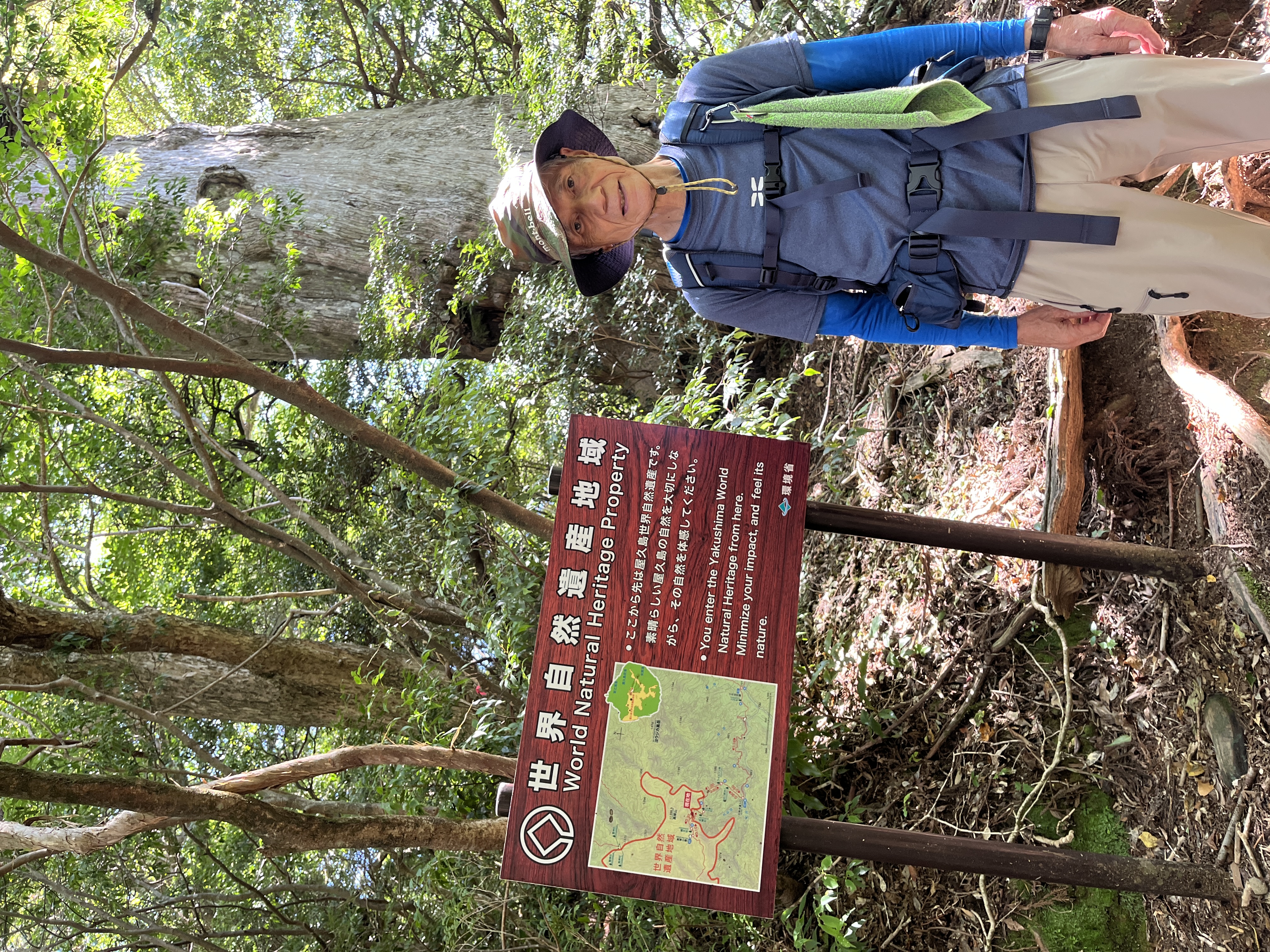 更に歩いて行き、大王杉の前で写真を撮ってもらった後、さらに進むと世界自然遺産地域の看板があり、そこから10分位で夫婦杉があり、更に10分位進むと名前は忘れましたが、大きな大木があり、そこで写真を撮ってもらいました。