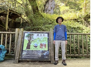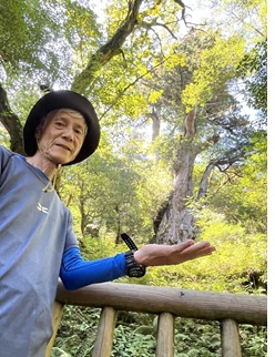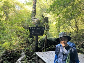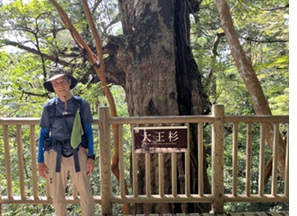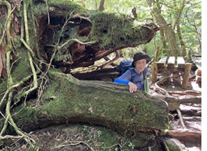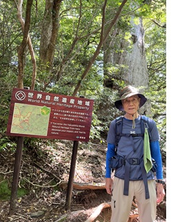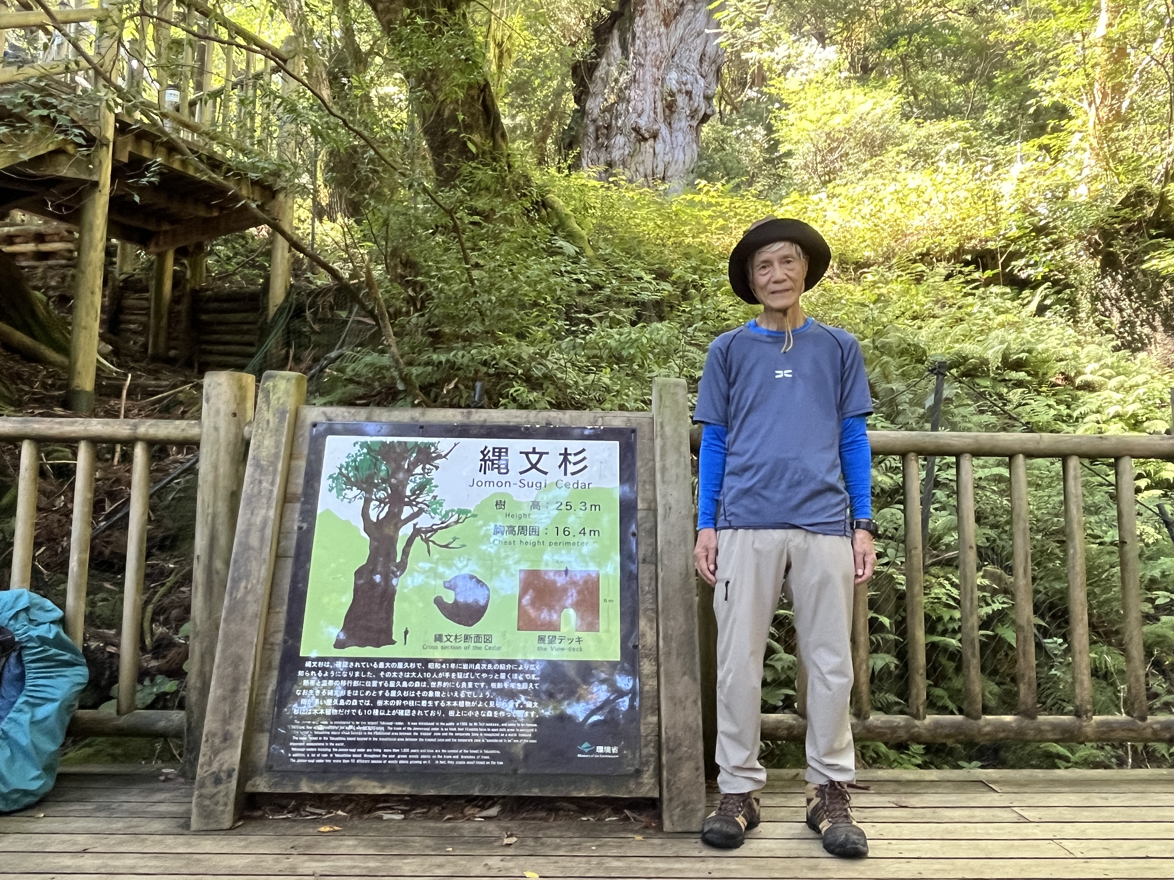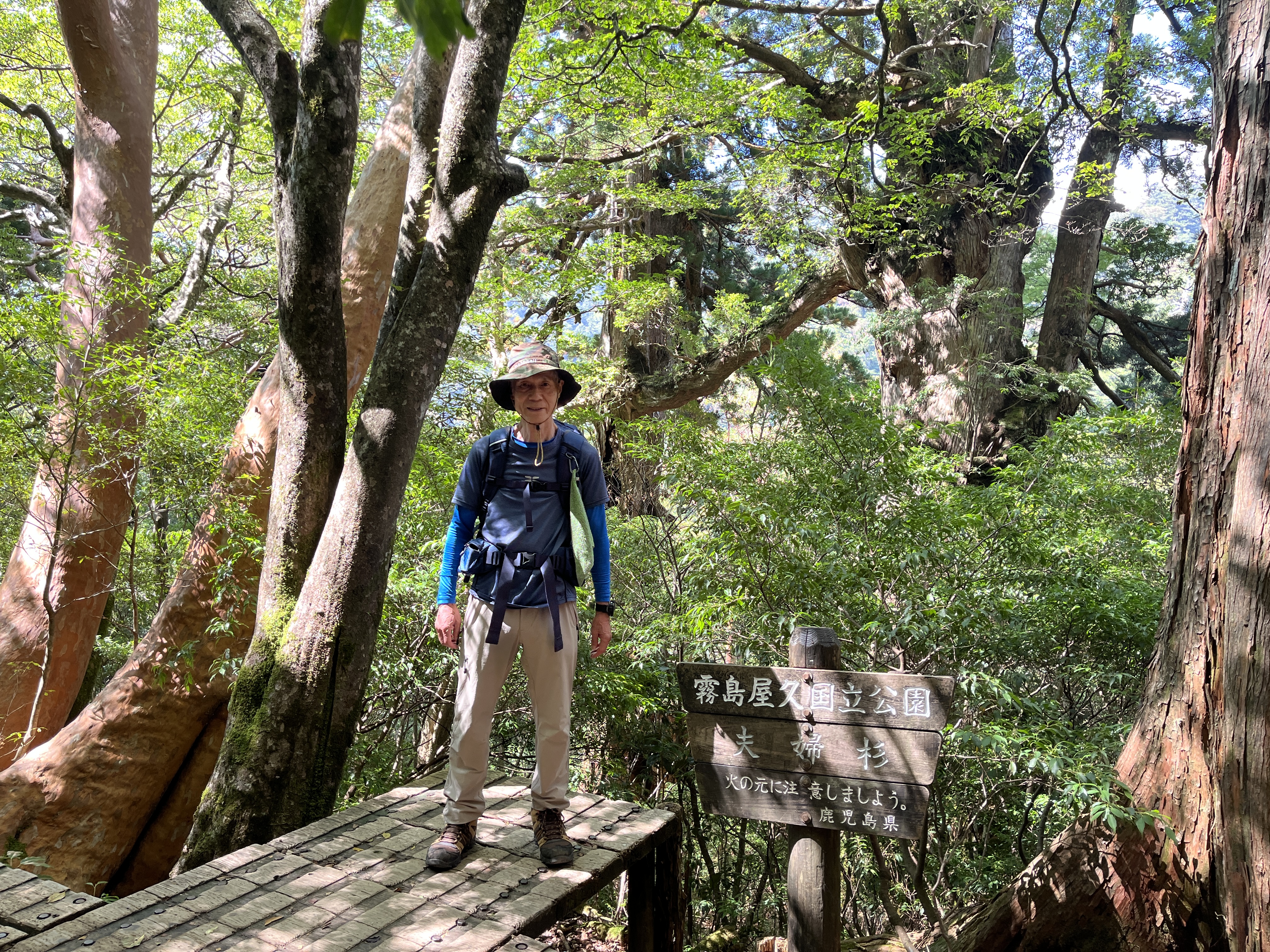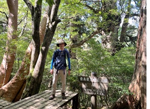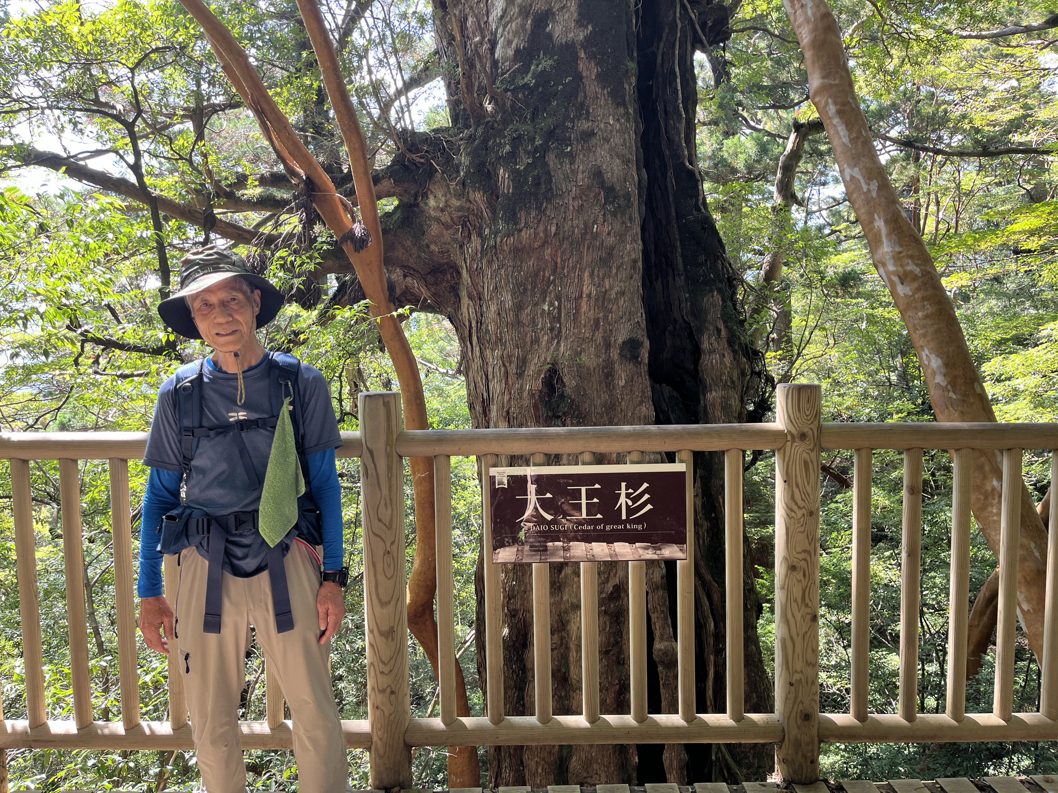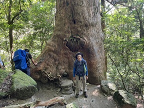 更に歩いて行き、大王杉の前で写真を撮ってもらった後、さらに進むと世界自然遺産地域の看板があり、そこから10分位で夫婦杉があり、更に10分位進むと名前は忘れましたが、大きな大木があり、そこで写真を撮ってもらいました。