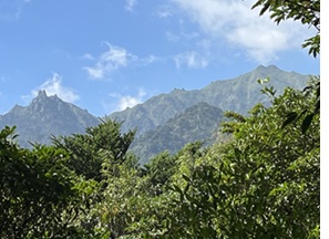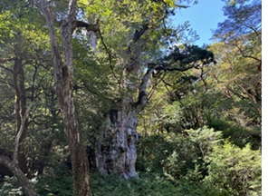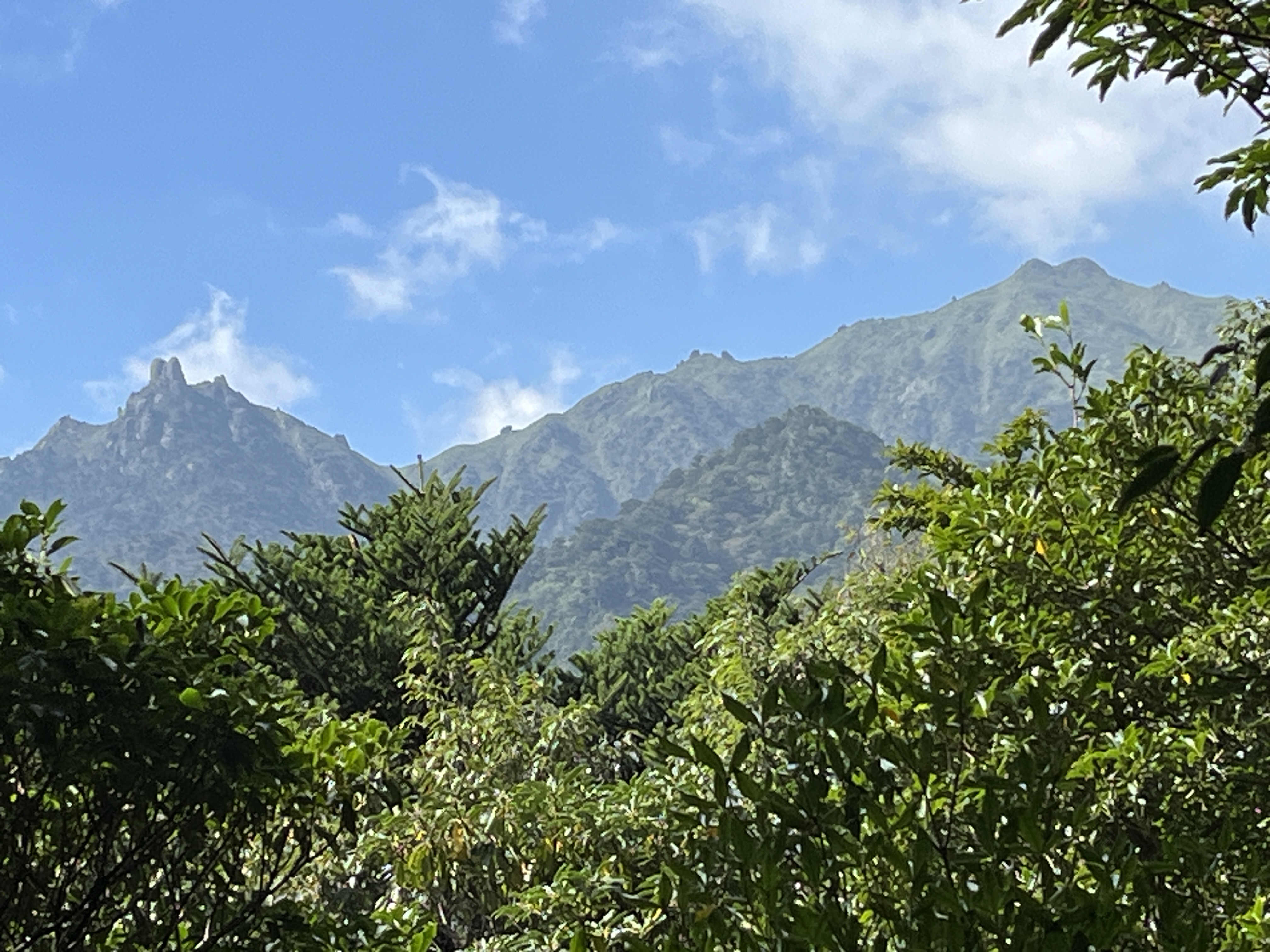 ウィルソン株を過ぎて歩いていると、屋久島で一番高い山、宮之浦岳が見えました。今日は晴れてきれいに見えましたが、こんなにきれいに見えるのは珍しいとの事でした。